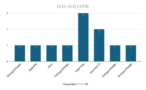 Hunting for enemy infrastructure in Japan Censysを使い、C2とラベルされた日本のインフラストラクチャーを集計しました。 期間は12月23日から12月31日です。 Total period 12/23~12/31 Total number of c2 servers found 11IP Type of C2 servers found C…