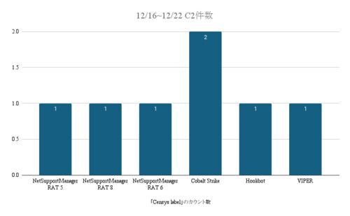 Hunting for enemy infrastructure in Japan Censysを使い、C2とラベルされた日本のインフラストラクチャーを集計しました。 期間は12月16日から12月22日です。 Total period 12/16~12/22 Total number of c2 servers found 7IP Type of C2 servers found C2…