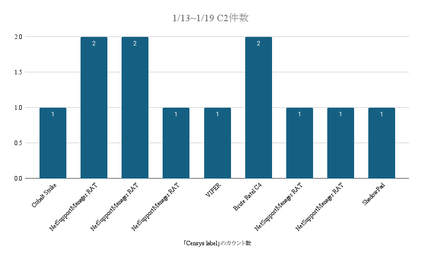 Censysを使い、C2とラベルされた日本のインフラストラクチャーを集計しました。