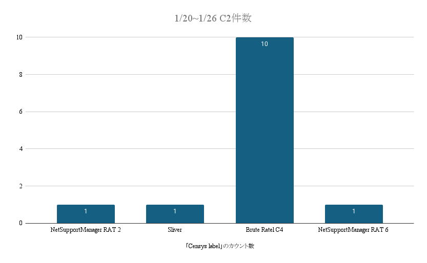 Censysを使い、C2とラベルされた日本のインフラストラクチャーを集計しました。