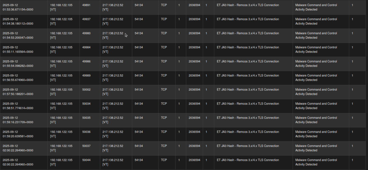 | 27 | 9月12日 | 217[.]138[.]212[.]52 | 9009 | M247 Europe SRL | Remcos |